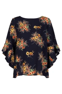 Stella Morgan – 3/4 Sleeve Floral Blouse With Hanky Hem Design